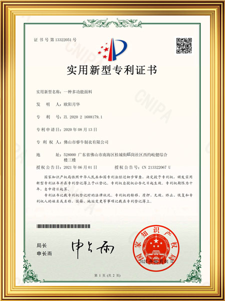 高導(dǎo)濕快干功能面料用復(fù)合納米纖維膜及其制備方法和面料證書